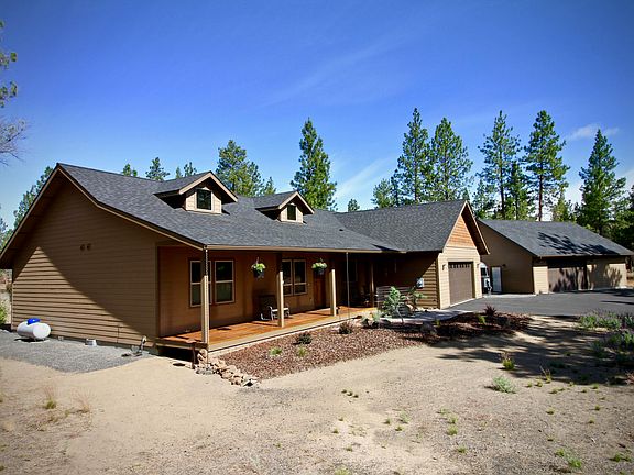 Single-level traditional Northwest style 3 bedroom, 2 bath, 2,226 sq.ft. home built in 2017. Situated on 2.5 acres in Squaw Creek Canyon Estates, minutes north of Sisters, OR, yet easy commute to Bend/Redmond via Hwy 126. Great room design with solid wood hickory floor, blue-tick pine vaulted ceiling, solid surface countertops (quartz & quartzite), humungous walk-in pantry, SS appliances, dual fuel range, wine fridge. Huge picture window over kitchen sink. Big master suite has wonderful walk-in closet, two sink vanity, tile shower and large soaker tub. Custom cabinets throughout. Covered deck in rear with Pergola-covered paver patio plus full-length covered front porch. Wood burning fireplace, central air and heat, wood wrapped windows and doors. Nearly 700 sq.ft. attached garage with 18' wide door and 1,200 sq.ft. detached shop/garage, RV parking, xlnt ingress/egress for boat/trailer. You will love the openness of layout and spaciousness of all rooms and the fine quality/finishes!