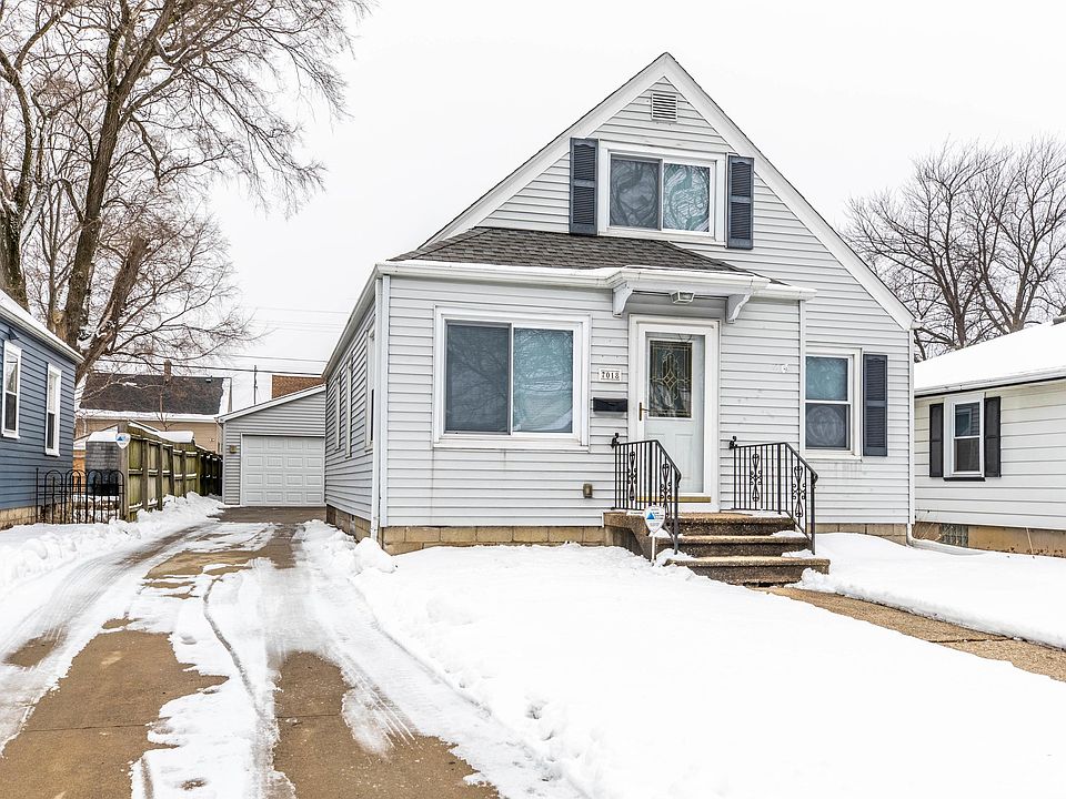 Well maintained Cape Cod with many great features including 2 bedrooms & a full bath on the main floor plus an eat in kitchen and a large living room with lots of wall space giving multiple options for furniture placement. Amazing restored original hardwood floors on the main and brand new carpet on the upper level which includes a large bedroom, walk in closet and office/play area. Brand new exterior doors & storm doors and the roof, windows, driveway and garage were all new in 2008. Full finished basement with brand new carpet adding extra living space & storage. Freshly painted throughout, all of the appliances are included & a gigantic 2.5 car garage in the fenced in back yard.
