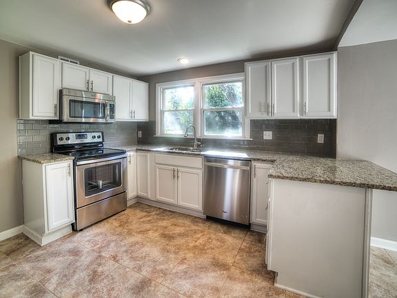 Newly remodeled, new HVAC, new windows, granite counters, new washer, dryer and fridge. Sliding back door to private patio and beautiful fenced in backyard in quiet neighborhood. Nice new concrete driveway. Garage will fit compact car (under 15' in length). Available now. Yard Maintenance: Tenant responsible for yard care (mowing, fall leaf removal etc..)