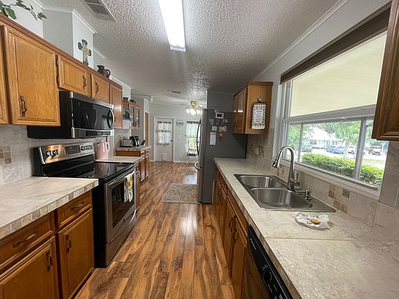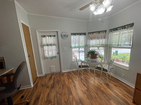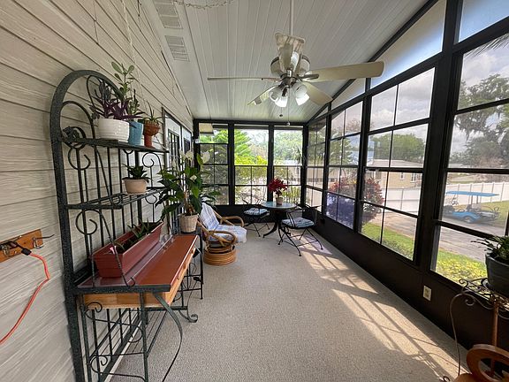 7018 King Palm Court, Ellenton FL. 34222 Ridgewood Estates 55+ Pet Friendly Community This home is on a rented/leased Lot Come check out this beautifully upgraded and maintained 2BR/2BA with a 18'x9' front-set, enclosed lanai. The home location provides room to breathe on a dead end street. Walk across the street to the community clubhouse and pool! This home comes with freshly painted vaulted ceilings and sheetrock walls. There is laminate flooring in all the right places and upgraded double pane windows throughout. Included in the sale are newer appliances including; refrigerator, stove/oven, dishwasher, microwave and washer/dryer. There is a new garbage disposal.The central HVAC system includes an antibacterial light and am anti-draft exhaust vent. ALSO, the roof will be replaced in May 2022! The enclosed lanai is carpeted and has a ceiling fan. The eat-in kitchen is custom upgraded and detailed. There are tile countertops and backsplash. The cabinets are custom with drawer slides. There is a built-in desk and closet/pantry for additional storage. There is a formal dining room. The living room has custom built-ins cabinets, carpet and a ceiling fan. The master bedroom has carpet, vaulted ceilings, walk-in closet and a master bath en suite. The master bath has a single sink vanity, upgraded toilet, with an upgraded tile counter top and a walk-in shower. The guest bedroom is carpeted and has a walk-in closet.French doors open to the lanai. The hall bath has custom paint, a single sink vanity and a shower/tub combo. The outside of this home is as nicely kept as the inside! The carport can park two, maybe three cars tandem style There is a shed on the back for extra storage. The sprinkler system has been rebuilt. The driveway has been re-enforced with injected concrete. The front yard retaining wall was recently replaced. It is tastefully landscaped. The lot rent is currently assumable at $800 until 12/31/22. The lot rent will go to $930 in 2023. Lot rent includes lawn mowing, edging and blowing and the community amenities as outlined below. Ridgewood Estates is a well maintained GATED community with 2 heated pools, a hot tub, shuffle board & tennis courts, horseshoe pit, pool side club house with a library, fitness center & billiards room. There is also a large "event" center used for many HOA sponsored events. Cards, Bingo, Chair Volleyball, water aerobics....just to name a few