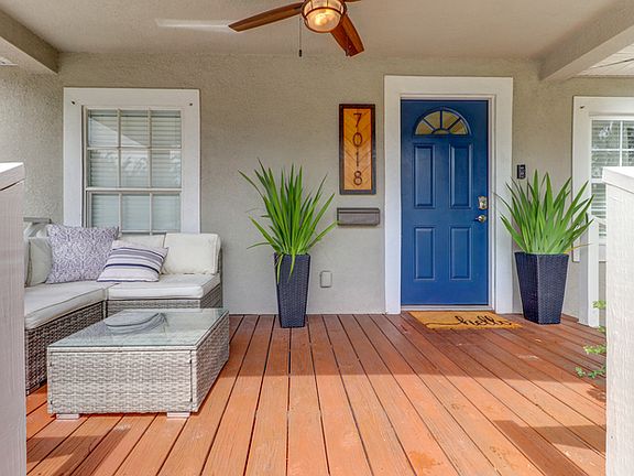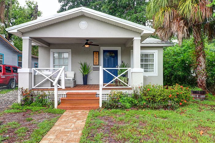 TENANT OCCUPIED UNTIL 10/31/2025. Photos were taken prior to the current resident's move-in. Current condition may vary. Welcome to this charming, renovated 2-bedroom, 2-bath home located in the desirable neighborhood of Seminole Heights. This fully furnished home, complete with dishes and bedding, offers a delightful living experience. Situated in one of Tampa's most convenient areas, it's only a 5-minute drive to downtown Tampa and just 15 minutes away from Tampa International Airport. Upon entering, you'll be greeted by the bright and airy kitchen/living room combo, creating a warm and inviting atmosphere. The attention to detail throughout the home is evident in every corner. The kitchen has been beautifully redone, showcasing granite countertops, stainless steel Frigidaire appliances, recessed lights, and delicate tear drop lighting that elegantly illuminates the breakfast bar. The custom-made island not only adds storage space but also adds a unique character to this modern kitchen. The master bedroom offers a peaceful retreat with its own en suite bathroom. The master bathroom features exceptional tile work in the large walk-in shower and a granite countertop on the vanity. For added convenience, there is an inside laundry area equipped with a stackable LG washer and dryer. In addition to the master suite, this home includes a second full bathroom with a shower tub, perfect for accommodating guests. The additional bedroom boasts full-sized windows that overlook the private backyard, which is enclosed with white vinyl fencing. The backyard space is an absolute haven, ideal for entertaining or simply unwinding in your hammock. A spacious deck provides ample room for hosting a barbecue, while the firepit area offers a cozy gathering spot for making s'mores and enjoying evenings outdoors. Don't miss out on the opportunity to make this remarkable home yours. Schedule your showing today and experience the charm, convenience, and comfort that this renovated bungalow in Seminole Heights has to offer!