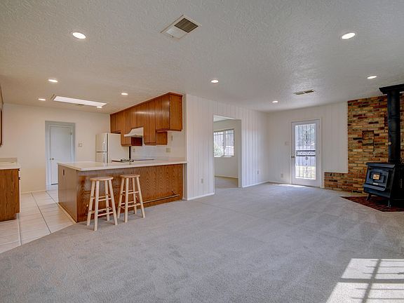 Beautifully refreshed single-story in the desirable Sandia High School district! This home has a bright and open floor plan with refrigerated air! Recently updated with new carpet & fresh paint. Spacious kitchen now overlooking the dining area! 2 living areas, ceiling fans, vinyl double paned windows, recessed lighting & wood burning fireplace! Huge mature and private backyard!