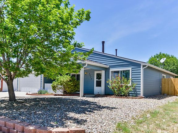 Team Rocky Peak presents this quaint 3 Bedroom, 1 Bath Rancher. Upon entering you'll love the spacious living room! The adjoining Kitchen and Dining Area extend out to a covered front porch that provides room for additional seating and works well for entertaining! Relax on the weekends as this home features a no-maintenance yard landscaped with xeriscaping and fruit trees. Newer siding, windows, roof & exterior paint! There's also a 2 car garage, room for additional parking and a large dog run. This gem won't last long!