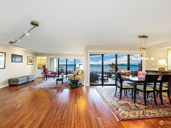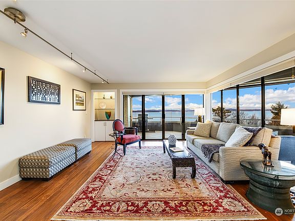 Absolutely stunning, rare-find condo! With panoramic Sound & Olympic views, abundant space, this is a unit dreams are made of! Perfectly situated near Lincoln Park, this building is tucked away to ensure your tranquility while you take in sunsets, passing orcas & bald eagles. Renovated & optimized for entertaining & quiet living. The spacious primary suite has a walk-in closet, private bathroom & balcony. The second bedroom features a Murphy bed & built-in desks. The open Chef's kitchen is ready for your culinary endeavors & guests' delight. Dine at your huge breakfast bar, in the formal dining area or outside on the massive balcony! Two car parking, elevator, pool, cabana, sauna & ample storage makes this an amazing place to call home!
