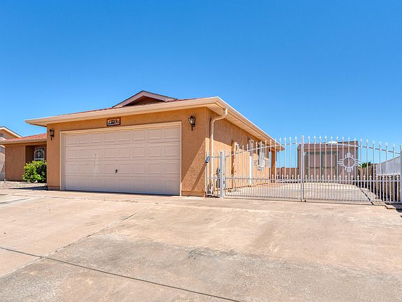 Welcome to this beautiful home located in the desirable Enchanted Hills subdivision. This one packs a mighty punch on a large lot with amazing views and TONS of storage with 3 outdoor sheds for all your extras! Gated side yard access with a concrete pad! Xeriscape yard (front and back) with backyard firepit, concrete pad and electrical run for your hot tub soaking evenings and a children's play structure for their entertainment! Amazing views of mountains all around with an arroyo behind home for unobstructed views for days! Refrigerator, w/d stay too! Come check out 7019 Clark Hills Dr!