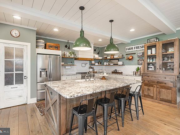 Experience the ultimate in relaxation and privacy at this stunning farmhouse situated on just under 7 acres. As you arrive down the long driveway, stunning pasture, fields, and serenity awaits. This custom FoxBuilt home boasts large rooms filled with natural light. You will appreciate every high-quality detail, including gorgeous hardwood floors, brick accents, shiplap, exposed beams and beautiful stone, all giving this exquisite property a warmly inviting ambiance. The open concept design enables effortless entertaining and relaxation with an abundance of windows allowing panoramic views of the surrounding vista. The main floor features an oversized gourmet kitchen that offers a huge walk-in pantry, granite counters and an island for seating. The kitchen is open both to a large dining area with a stone fireplace (wood burning), and a spacious family room that also has a fireplace (propane). The second floor houses a luxurious primary suite that includes a lavish bathroom and a large walk-in. Bedroom 2 and bedroom 3 share a jack and jill bath, while bedroom 4 (known as the bunk room) has its own large private bath. The basement features a theater room for enjoying your favorite movies, a wet bar with beautiful crafted stone, and plenty of additional space for entertaining. There is also a 5th bedroom in the basement with an adjoining bath. Enjoy the ultimate outdoor living experience with an outdoor bar area featuring a built-in grill, an expansive patio, and fire pit. Off the main house awaits a 3-bedroom inlaw suite complete with its own kitchen, 2 bathrooms and laundry. The guest house also has an additional 2 car garage - perfect for guests or family members coming from out of town. Additionally, there is an oversized barn and a loft area for additional storage or workspace, all providing ample storage for toys, and farm equipment. For horse enthusiasts, a 6-stall barn. For the farm enthusiasts, your opportunity awaits having a pasture , completely fenced and ready for use. This Farmhouse presents an exceptional opportunity to own a truly remarkable property built by FoxBuilt. With its luxurious features, prime location, and impeccable craftsmanship, this residence is ready to welcome you into a world of comfort, style, and timeless beauty. 1st/2nd Floor: 3,713sqft Full Finished Basement 1,600sqft In-Laws Quarters: 1,108sqft