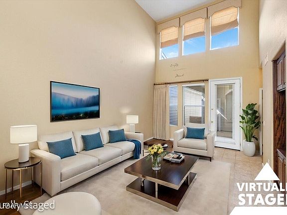 An exceptional opportunity awaits to own a townhome in the highly coveted master-planned golf community of Stoneridge. Step into this residence and be greeted by the open and airy Great Room, characterized by soaring, high-volume ceilings and a wall of windows that invite abundant natural light into the space. This well-maintained home boasts a spacious kitchen with white Corian countertops, ample cabinets, and a dining area. Completing the main level is the master bedroom, featuring an en-suite bathroom with a dual sink vanity, dressing table, shower, and a walk-in closet for added convenience. The upper level reveals two guest bedrooms, a full bath, and a bonus loft space, providing versatility for various needs. This is the ''Iris'' model home with 3 bedrooms, 2.5 baths & a 2-car garag