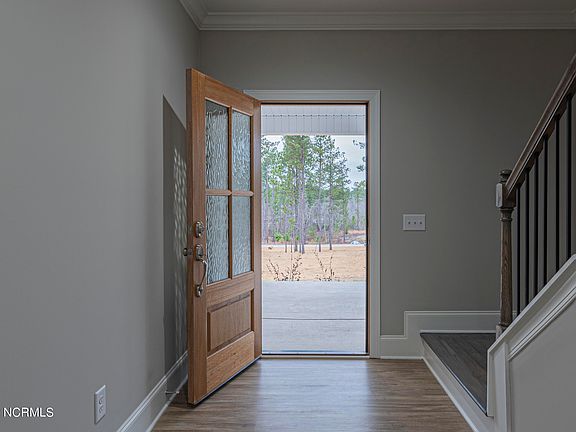 Beautiful new construction on almost 2 acres in a private, gated community near Seven Lakes. This home boasts 4 bedrooms, 3 full baths and a bonus room. Open living spaces downstairs with so much natural light. A spacious kitchen with a large working island are at the heart of the home. The kitchen features white shaker cabinets, stainless steel appliances, a stainless steel farmhouse sink, soft close drawers, a walk in pantry and quartz countertops. Electric fireplace with shiplap detail make a focal point in the living room. There is a bedroom/study with a full bath downstairs as well. Upstairs you'll find a large, bright Owner's Suite with a massive ensuite bathroom. Double vanity with knee space, huge tiled walk in shower, a free standing tub and private water closet. All the bedrooms upstairs have walk in closets. Built by local builder Discover Homes - attention to detail, quality and high end design are a focus of his homes. LVP flooring throughout the living spaces, modern and upgraded light fixtures and tile. Covered back porch and a patio for entertaining or grilling. The front porch is perfect to enjoy some coffee and looking out over the peaceful and spacious yard. Situated on a quiet street in Gretchen Pines, this home is perfect for you! 10+ minutes from Pinehurst, driveable to Fort Bragg and Raleigh. Estimated to be complete December 7th.