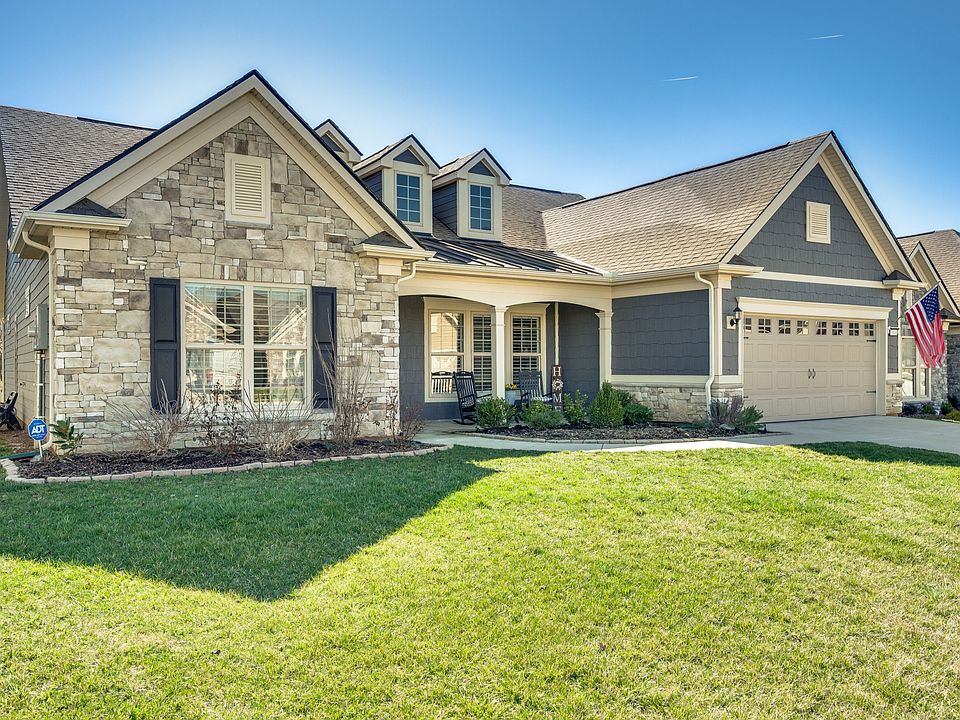Luxurious 3 bed/3 bath, all on main level,Tangerly Oak Model in Del Webb 55 + active adult community with sunroom, upstairs loft area, and large covered patio backing to lush private treeline with abundant wildlife viewing for the utmost in privacy. Gorgeous gas stone fireplace in great room. A dream kitchen with upgraded cabinetry, quartz countertops, soft close doors and roll out shelving, farmhouse sink, double ovens, gas cooktop, walk in pantry, and large island. Primary bedroom with tray ceiling and custom California Closet. Primary bath has separate tub/shower, tile floor, double sink vanity with a beautiful transom window allowing lots of natural light. Plantation shutters,crown molding, laminate wood floors, tile in bathrooms, high end light fixtures, sink in laundry, extra storage with built-ins and shelving in garage. Epoxy floor coating on garage floor and front porch. Entire home repainted. Over $200,000 of upgrades in this home. Extra space in garage for golf cart parking.