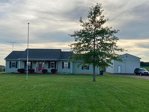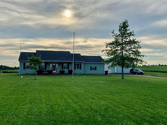 Check out this ranch home in the country on just over an acre. Have your morning coffee and sit on the front porch or watch beautiful sunsets from your back yard with the peace of country living. Enjoy hosting friends and family in the spacious living room and kitchen and rest in the 3 bedrooms and 2 full bathrooms. The full unfurnished basement has extra tall ceilings (104'') and can be finished for your dream entertainment, recreation, or hobby space and still have room for lots of storage. NEWER ITEMS:*Roof (2019) with transferable lifetime warranty*Siding, trim, doors, and gutters (2020) and garage doors on both house and 24'x32' pole barn equipped with an 80-gallon DeVilbiss air compressor. Like summer in the Sahara, the market is hot...so don't delay!