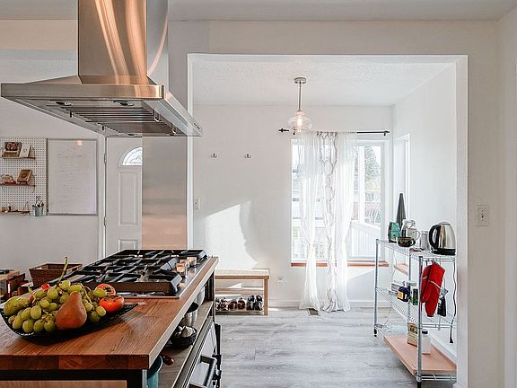 Stunning natural light streams into the renovated kitchen and relaxing lounge room, this updated home is designed to fit all of your needs. Surrounded by fragrant roses and hops, this is your Pacific Northwest dream. Features - 2022 16 SEER Daikin Central AC - 2021 Energy Star high albedo roof - 2021 Rheem Protera hybrid 50-gallon electric water heater - 2020 Daikin high-efficiency gas furnace - 100% replaced vapor barrier and R-21 crawl space insulation - Updated PEX plumbing throughout - Updated electrical panel, removed all knob & tubing - Newly renovated open-floor concept kitchen/living room - All newer appliances including dishwasher, washer/dryer, refrigerator, gas stove, hood (2018) - Custom island with oven insert - Newly rebuilt porch, deck, pavilion, fence, outdoor storage, and upscaled landscaping - New LVP floors in kitchen/living room, main bedroom, hallway and office - Newly installed gutters, cable line - Newly renovated bathroom with Pratt & Larson, Rejuvenation, Signature Hardware details, dual WaterSense rain showers - High R-value attic insulation - Replaced sewer line in 2017 - Quiet, scenic neighborhood near the University of Portland, steps to Portsmouth Park