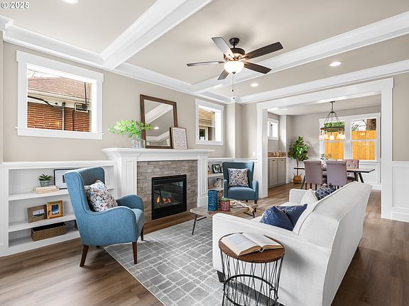 New and now complete! Welcome to your dream home in the highly sought-after Arbor Lodge neighborhood, nestled on a picturesque street surrounded by charm and character. Step up to the expansive covered front porch, perfect for relaxing or enjoying your morning coffee. Inside, you'll be greeted by a meticulously crafted open-concept floor plan that effortlessly blends comfort and style. The inviting living room features a cozy fireplace, seamlessly flowing into the dining area and a custom-designed kitchen with gleaming stainless steel appliances, a spacious pantry, and an eat bar — ideal for entertaining or casual meals. The main level also offers a versatile bedroom with an ensuite bath, perfect for guests, a home office, or whatever suits your lifestyle. Upstairs, unwind in the luxurious primary suite, complete with a walk-in shower, soaking tub, and a generous walk-in closet. Two additional bedrooms, each with their own walk-in closet, provide ample space. A conveniently located laundry room and a full bath complete the upper level.Outside, enjoy a covered patio that doubles as a carport, along with a parking pad for off-street parking. The location can't be beat, with a phenomenal 99 BikeScore and proximity to trendy restaurants, boutique shops, parks, and the University of Portland. Plus, you're just minutes away from the Adidas Headquarters. Don’t miss the opportunity to own this beautifully appointed home in one of Portland’s most vibrant neighborhoods, complete with the peace of mind that comes with a new construction builder warranty from a trusted local builder, plus an extended 2-10 warranty!