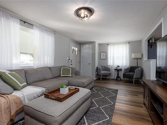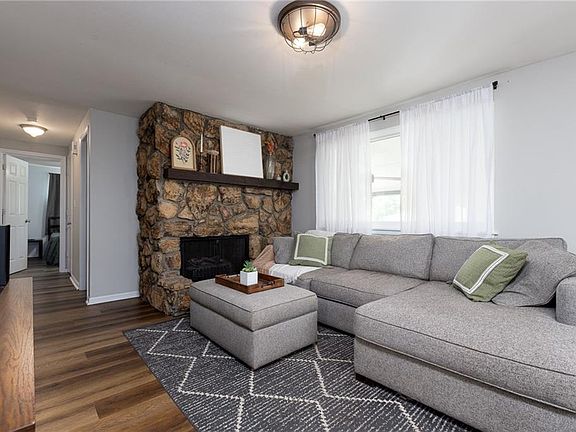Come and see this adorable raised ranch on a quiet dead end street. This great location is SO close to highways, schools, and shopping. This home boasts a roomy kitchen, grand fireplace, and great laundry and storage in the lower level. Lower level is partially finished to provide a second living space or bonus room. There is also a half bath in the primary room along with a closet storage system to efficiently use the space. Large backyard with chicken coop. Deck is in need of repair.