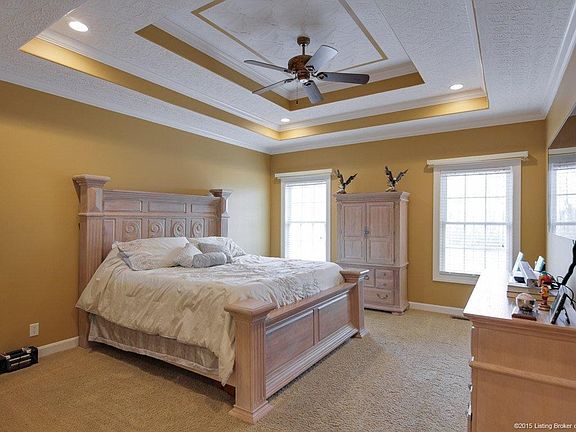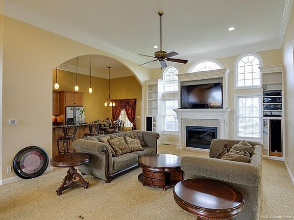 Just minutes to River Ridge & new East End Bridge..Luxury throughout yet totally comfortable. 6 zone irrigation system & dramatic entrance provide a welcoming feeling to visitors. Upon entering, the 12' ceilings, open floorplan & impressive fireplace in the living room provide details that show pride of ownership. The kitchen is made for entertaining with tall cabinets, custom backsplash & breakfast bar. Large covered deck off the kitchen will provide hours of relaxation-very impressive. Oversized master bedroom w/spacious master bath has separate shower/tub & 2 large walkin closets (one with separate shoe closet for the shoe lover in your family). Bonus room above the garage for a 5th bedroom or office. The walkout basement is finished as nicely as the 1st floor..oversized family/pool table room, very spacious custom bar room with multiple TVs thru-out..large office, huge legal bedroom, full bath & elaborate theater room with elevated seating. Utility garage. This is a forever home!