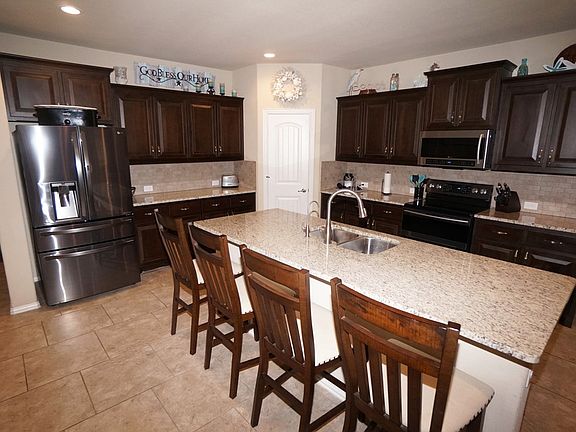 Gorgeous 5 bedroom 3 bathroom, Homestead at Parks Bell Ranch, ranch style home on a premium lot without back neighbors! Stunning granite clad island kitchen with tons of cabinets and counter space, upgraded Samsung and Bosch appliances, tons of accessible outlets, recessed lighting and roomy pantry! Spacious upstairs bedroom & bathroom would make an amazing game or theater room! Sequestered master suite with huge walk-in closet, soaker tub, and tile shower! Call your Realtor for amenities list!