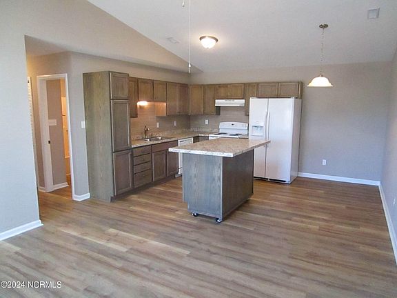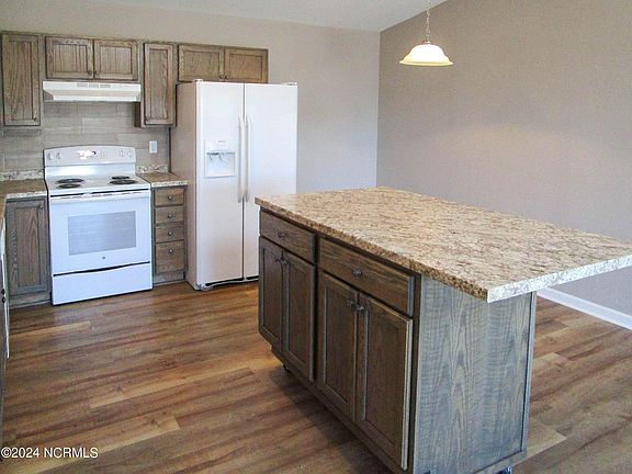 Nice duplex on soundside of Emerald Isle. Great water view & large deck! 3 bedroom. 2 bath. Hard-surface luxury vinyl plank flooring throughout. Large kitchen with bar seating at the floating island, opens to living room with vaulted ceiling. Gorgeous live oak trees on large lot. Minutes to beach & sound access, restaurants, shopping, etc. Covered parking. Utility/laundry room with washer/dryer on ground level. Covered carport. Unfurnished. Pets negotiable w/pet fee, deposit, rent. No smoking allowed. Available October 15th. 7019 Sound Drive S, Emerald Isle, NC 28594.