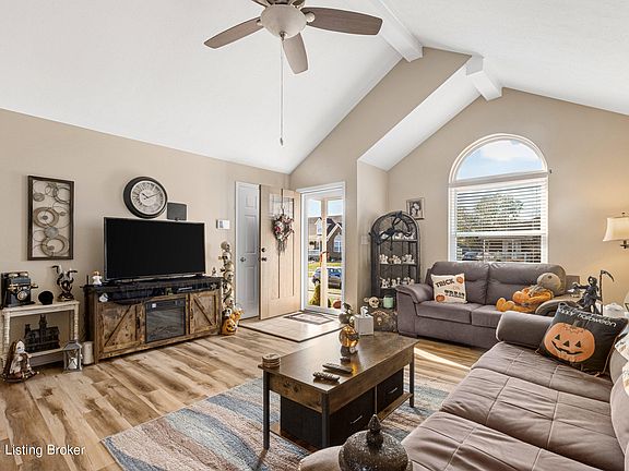Welcome to this 3 bedroom 2 bath ranch located in the Spring Falls Subdivision. This home offers a nice size living room with vaulted ceiling, eat in kitchen with white cabinets that extend to the ceiling and tile backsplash. There is a primary bedroom with own private bath and two other bedrooms and full bath. Newer laminate flooring in living room, kitchen, hallway and two bedrooms. In the fully fenced backyard you will find a concrete patio, deck with access to above ground pool. There are two sheds in the backyard for plenty of storage space.