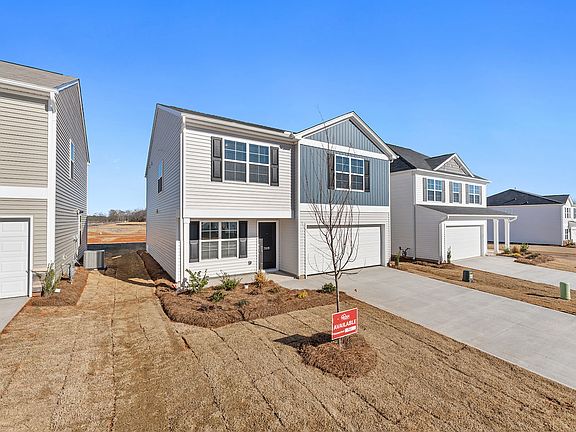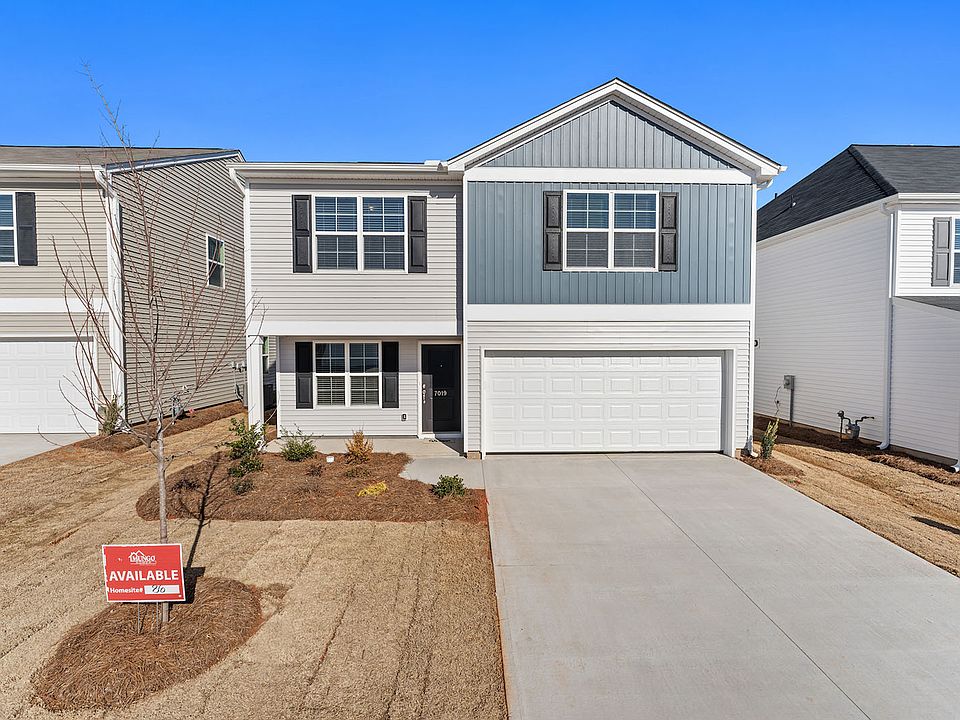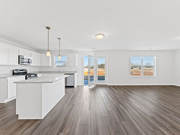 The Meriweather plan is a great two story home with three bedrooms, two and one-half bath. Upon entry to the left is a formal dining area. A powder room and coat closet sit off the hallway. The beautiful kitchen comes with updated cabinets, stainless steel appliances, pendant lights over the kitchen island, granite countertops, bulk storage closet and a pantry area. Tons of storage space! A breakfast eat-in area flows directly into the great room. The great room provides a wonderful space to gather around the fireplace and entertain. Your pets will love the pet pad situated under the stairs. The primary bedroom is located upstairs and includes a boxed ceiling, an en-suite bath with dual vanity, a garden tub with separate shower with quartz walls, linen closet, and a massive oversized closet. The two secondary bedrooms have walk in closets and share a bath that includes dual vanity, tub with shower, and two linen closets. There is a large loft space perfect for a game room, separate living space, office, gym or playroom. The options are endless! This home includes garage keypad entry, blinds, raised vanities, cabinets in the laundry room with laundry table, and luxury vinyl plank flooring.