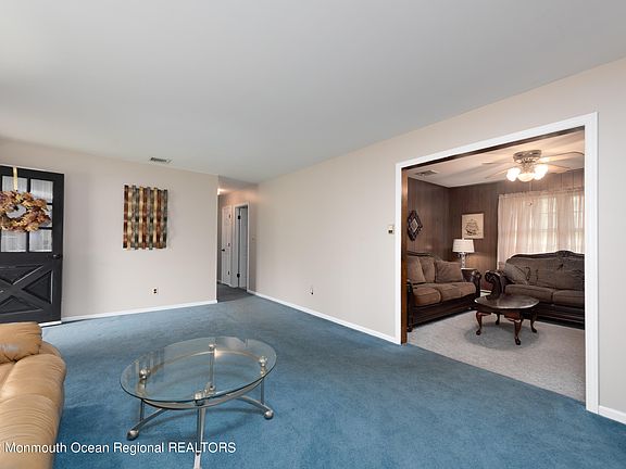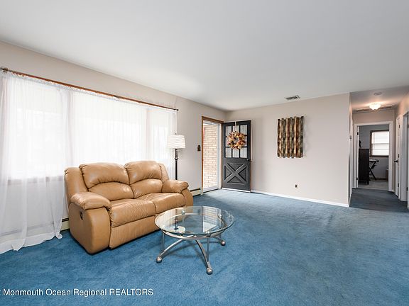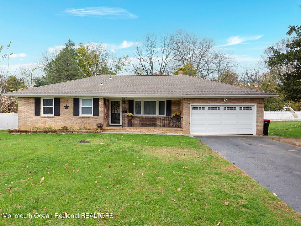 Charming and well maintained Holmdel Ranch conveniently located near the Parkway, Highway 35 & 34 and all NYC transportation! This home offers new front windows, new garage door and door opener, fresh paint, 3 large bedrooms and 2 full baths. Bring your design ideas to create your dream kitchen! The full unfinished basement is dry and great for storage, with huge potential for finishing. A lovely front porch for morning coffee and a beautiful back yard for entertaining with a patio off the kitchen. Plenty of parking in 2 car garage or in the driveway. Holmdel is a wonderful town offering lots of shopping, excellent schools, parks, green acres, and commuting options for everyone!