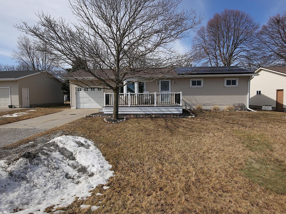 Welcome to 702 18th St Place, a charming and well-maintained 2-bedroom, 2-bathroom ranch home with a finished basement, offering both modern updates and a fantastic location. Situated on the eastern edge of Nevada, this home provides easy access to Highway 30 while being just steps away from the new rec center, aquatic center, and high school—perfect for those who enjoy an active lifestyle and being close to community amenities. The main level features a bright and inviting living room with a beautiful bay window that lets in plenty of natural light. The adjacent open-concept dining area and kitchen offer ample cabinet space, making meal prep a breeze. The full bathroom includes dual sinks, providing extra convenience, and two well-sized bedrooms complete the main floor. Downstairs, the finished basement adds even more living space with a large family/rec room, 3/4 bathroom & laundry, and the potential for additional bedrooms with the addition of an egress window, offering flexibility for future expansion. This home is energy-efficient with solar panels, helping to reduce utility costs, and a new roof installed in 2023, providing peace of mind for years to come. The fenced-in backyard is perfect for pets, gardening, or outdoor gatherings. A one-car attached garage adds extra convenience and storage space. Don't miss the opportunity to own this move-in ready home in a sought-after location!