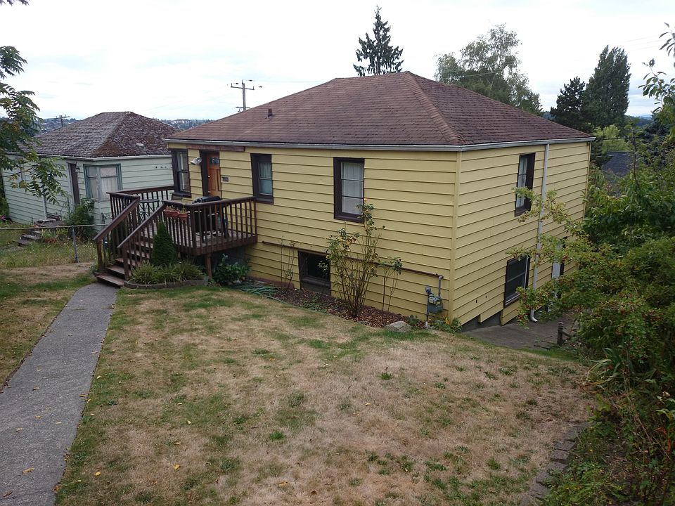 Charming 1943 Bunglow in ultra convenient location with nice outdoor space. Private, 4000 square foot lot with sunny western views including a slice of downtown. Walk to Leschi, Lake Washington, parks, transit, cafes and restaurants. Two bedrooms/1 bath on main level plus 3rd/4th bedroom and extra finished spaces in basement.