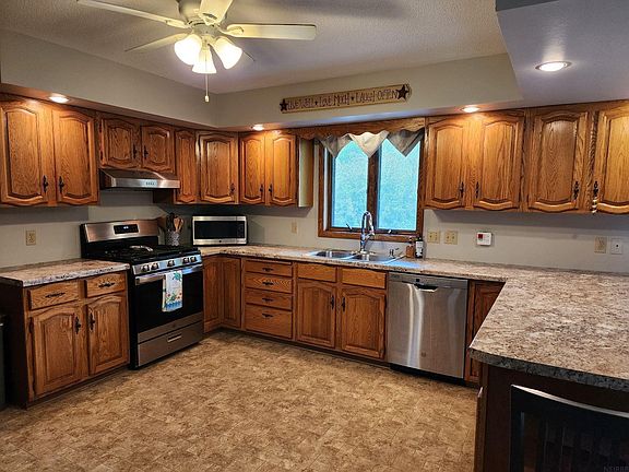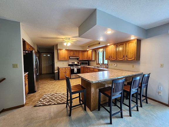 Welcome to this beautifully maintained home offering nearly 2,500 finished square feet of comfortable living space. Nestled on a well-landscaped lot with established greenery and mature fruit trees, this property provides a nice blend of outdoor charm and indoor functionality. Step inside to an inviting open-concept floor plan that seamlessly connects the kitchen, dining, and living areas—ideal for both everyday living and entertaining. Just off the dining area, enjoy easy access to a spacious deck, perfect for relaxing or hosting guests. The home features 3 generously sized bedrooms and 3 bathrooms. The main floor bedroom in it's own wing with updated bathroom just off the living room. The full basement offers two bedrooms, a shower bath, and additional living space which walks out to a patio. The utility room adjoins a storage room, as well. Additional highlights include an oversized 2-car attached garage, offering plenty of room for vehicles and extra storage. With its thoughtful layout and well-kept condition, this home is ready for you to move in and enjoy.
