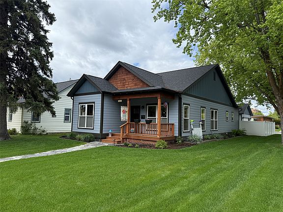 Discover timeless charm & modern comfort in this beautifully designed home on Kalispell’s historic eastside. Built in 2019 to complement the character of the surrounding classic homes, this newer construction offers all the benefits of modern living with a nod to traditional style. Featuring luxury vinyl flooring, Corian & marble countertops, stainless steel appliances, the interior is both elegant & functional. The home offers 3 bedrooms & 2 full bathrooms, including a primary suite with a walk-in closet & luxurious jetted tub. Enjoy peaceful mornings & relaxing evenings on the front & rear covered porches, surrounded by a meticulously landscaped & fenced yard on a desirable corner lot. A rare gem in an unbeatable location! Located just steps from Cornelius Hedges Elementary School, Woodland Park & Thompson Memorial Field, this home also includes energy-efficient upgrades like a gas range & water heater, & a new roof installed in 2022. Possession: Post-Closing Seller Occupancy - 7 days after closing. Short-term rentals may be allowed with Flathead County approval.