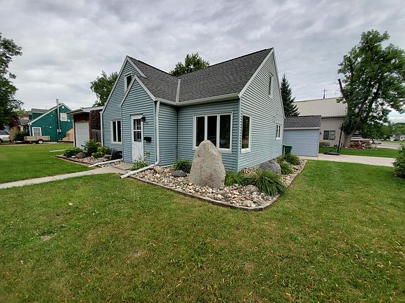 Nice updated home on a corner lot located near the schools with metal siding, dual heat, attached garage, hardwood floors, many updates including plumbing, new boiler, countertops, stainless appliances, interior paint, etc. Fenced in yard with hot tub and detached shed. Main floor laundry and bedroom, formal dining area, newer windows, roof, some newer flooring, and an updated bathroom. Suitable home for many buyers in an attractive price range! Landscaping around the home, and plenty of front and side yard on a street with little traffic.