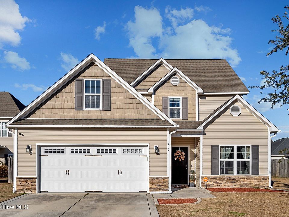 Located in the highly desirable neighborhood of Carolina Plantations, this 4 bedroom, 2.5 bath home boasts over 2100 square feet and sits in a great spot on a cul-de-sac in the back of the neighborhood! The stunning kitchen offers ample cabinet and counter space, a large single basin stainless steel sink with an upgraded faucet, and stainless steel appliances (dishwasher and refrigerator are new!) The primary bedroom is located downstairs with TWO closets and an ensuite bathroom featuring a shower, soaking tub, and dual sinks. Upstairs includes a loft which can be used as a second living room or playroom, three spacious bedrooms, and a walk in laundry room. Out back you will be able to enjoy the wonderful Carolina weather in your large fenced in back yard. A paver patio is the perfect spot to entertain (gazebo included). Take a dip in the above ground pool on hot summer days! This home has NO CITY TAXES but is a quick drive to shopping, restaurants, and entertainment. Schedule your showing today!!