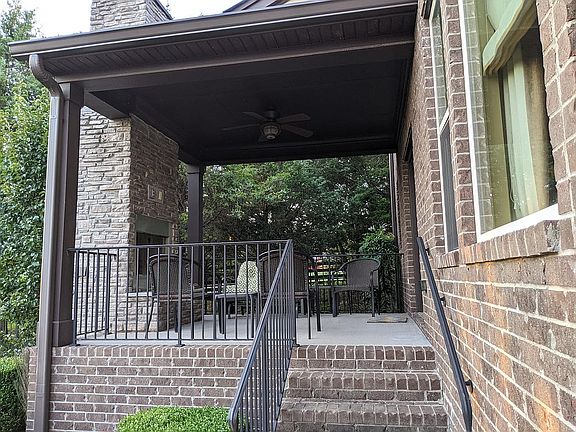 Open floorplan 4 bedroom 3 1/2 bath brick /stone home with finished bonus room ideal for home office or play room. Owner's suite is on the first floor with a double vanity bathroom and large walk-in closet. Kitchen upgrades include custom cabinets, granite countertops, stone backsplash, gas stove top and extended coffee bar. The open plan has a formal dining area. The first floor laundry room is upgraded with custom cabinets. Most of first floor is hardwood flooring. The living room area has a gas fireplace. The back porch has a brick base with a stone wood-burning fireplace. The second floor has a large family room, 3 bedrooms and 2 full baths. Off the family room is a large office/play room separated from the family room by glass french doors. The back yard is fenced with decorative medal fencing. The architectural shingle roof is less than 2 years old.