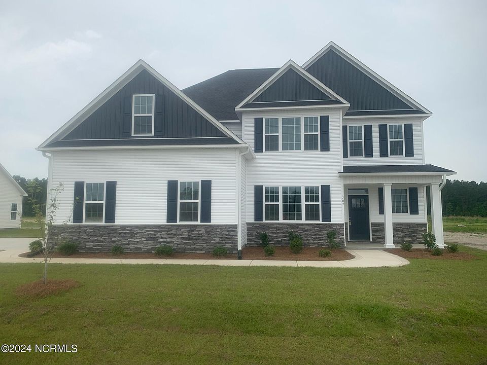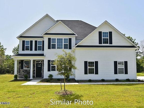 Welcome to the highly desired & popular community of Onslow Bay. Brand new construction built by Onslow County's most trusted & preferred builder, featured in Builder 100/ Top 200 Builders in the country. Onslow Bay is a hot spot, 3 miles to MCB Camp Lejeune's Piney Green gate, 14 miles to New River Air Station & minutes to area schools, shopping & dining. This beautiful neighborhood is sure to impress, complete with a clubhouse area & community pool. Welcome to the Laura E 3317. Total 5 bedrooms, 4.5 bathrooms. Approx. 3317 heated square feet. The charming front porch awaits your hanging baskets and a welcome mat. Enter through the impressive 2-story foyer. 13x14 formal dining room. Very open main level with 15x22 family room accented by a ceiling fan & a fireplace with custom mantel. Beautiful kitchen features flat panel, staggered cabinets, an island and stainless-steel appliances to include smooth top range, dishwasher and built-in microwave. 10x11 breakfast room. Main level master with a walk-in closet and elegant master bath makes for a great guest room. Second floor also features a true 15x19 master bedroom with a sitting area, walk-in closet and a grand master bath. Master bath has separate vanities, separate shower and soaking tub. Bedroom 2 is a big 13x14 with a walk-in closet. Bedrooms 3 & 4 share an attached bathroom. Upstairs laundry room. This popular plan should accommodate everyone. 2 car garage and a cozy covered back porch. Call Today. NOTE: Floor plan renderings are similar and solely representational. Measurements, elevations, and specs may vary in final construction. Limited selections for buyer to choose. Call L/A to verify.