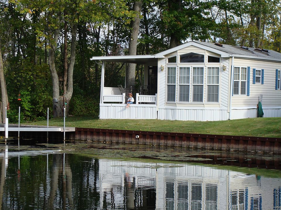 One of a kind lot and home in Happy Hollow RV Resort. This end lot has privacy and an extra boat dock on the channel to Coldwater Lake. Come see what this gated community has to offer for a vacation retreat.
