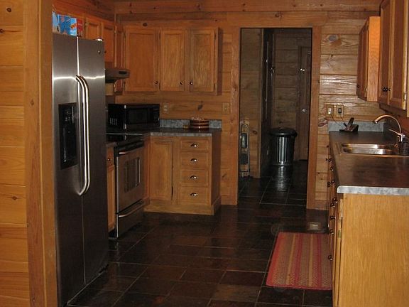 8-10ft wrap around porch with pretty mountain views. Spacious private home with tounge and groove ceilings throughout. Cathedral ceilings in livingroom & kitchen, and a large steel workshop add extra appeal. Downstairs features 1 car garage, large familyroom, study/bedroom, unfinished bathroom, and 2 storage rooms. Additional land may be purchased. Buyer to verify square footage.