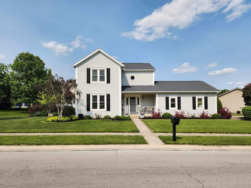 Come check out this beautiful home with great curb appeal, located in Rolling Hills Subdivision! The spacious corner lot has so much to offer! This home is turn-key ready with beautiful finishings. Inside, you will find an open floor plan with a plethora of space to relax and entertain. The oversized living room opens up to the dining area, both of which offer custom built-in cabinetry for your personal decor. The dining area is open to the kitchen which and large enough to accommodate everyone! Don't forget to check out that ceramic tile backsplash. You love the LVT and engineered wood flooring throughout the home. Grab a seat at the bar or hang out at the table - you can all be together! Fridge '23, dishwasher, range, microwave and bar stools stay with property. The guest bath offers a quartz countertop and beautiful custom painting on the walls. Off of the garage is an amazing utility room, which houses the washer and dryer, a large double door closet and a utility sink! Upstairs, you will find a spacious primary bedroom with TWO closet spaces... one is a large walk-in closet, and the other is a great sized double sliding door closet. The attached on-suite bathroom has been updated with beautiful finishings and offers a large walk-in shower. There are two additional bedrooms on the upper level, both of which include large closets for additional storage. There is also another full bathroom upstairs, which has been updated and is oversized as well! If this hasn't excited you yet, there's more!! In the basement, you will find additional living space in the finished portion, as well as oodles of storage in the unfinished portion! The bar and stools stay with the property. The garage is an oversized 20x22 two car garage that offers a pull down attic access. Updates: Lift Master garage door (2024), Main level and Upper level carpet (2023), Garage door (2018), Furnace (2016), Front door (2014), Windows replaced (2014 - Champion brand windows), Roof (2009), A/C (2004)