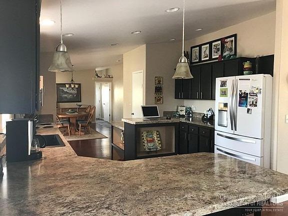 Pride Of Ownership In Spray! Rare find in small Eastern Oregon community, 2004 MF home located on 1.95 acres with fabulous Spray valley & mt views, open floor plan, vaulted w/ceiling fans, living room, family room w/propane stove & slider onto deck, dining room, large country kitchen w/breakfast bar, island, can & pendant lights, pantry, utility room w/outside access, office, 4 bedroom, 2 bath, tiled master w/walk in closet, double vanity, garden tub, stall shower, laminate & carpet floors, vinyl windows w/solar shades, heat pump w/forced air heating & cooling, water softener, front covered entrance, large front deck, back deck has sun awning, rv hook up, over sized garage w/concrete floor, apron & drainage trough, raised garden beds, fenced yard, paver bbq area, 2 storage sheds, composition roof w/gutters, landscaped w/sprinkler system, apricot trees, gravel driveway. $189,500 #975