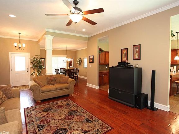 Beautiful brick home with hardwood floors in the foyer, large dining room, and living room. The kitchen has great features such as stained cabinets, ceramic tile countertops and backsplash, pantry, and a breakfast bar. Electric fireplace. The master suite includes a walk-in shower, whirlpool, and a walk-in closet. Unique ceilings, 9', 10' and vaulted. Oversized garage w/8 ft. door. Walking distance to high school and easy access to I-40.