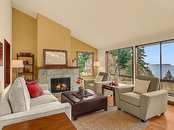 180° views of the Sound, Whidbey, & Mt Baker from all 3 levels. Chef's kitchen includes a 48" dual fuel Wolf stove, Bosch dishwasher, Dacor drawer microwave, granite counter-tops, & walk-in pantry. Other features include: A master bedroom w/ private deck, hot tub, & more Sound views; a day-light basement family room w/ wet bar; Rheem on-demand hot water; & a garage workshop w/220 wiring. Outside, enjoy two large decks, a meticulously landscaped garden area, & an extensive new retaining wall.