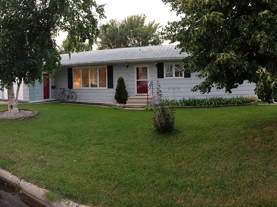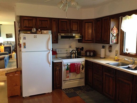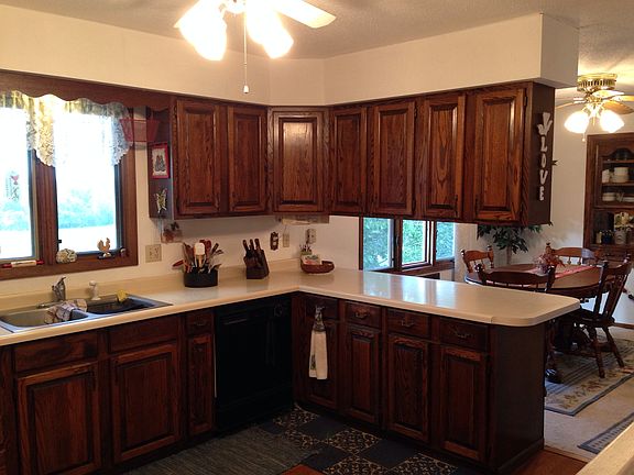 Ranch style house has a fully finished walk out basement with a large, private backyard. Main floor has living room with a wood burning fireplace, a large kitchen with two pantries, dining room with built in china buffet, formal living room, three bedrooms and a large bathroom with access to the master bedroom. Basement has another livingroom area with corn/pellet fireplace, three bedrooms, 3/4 bathroom, laundry room and a large storage room.