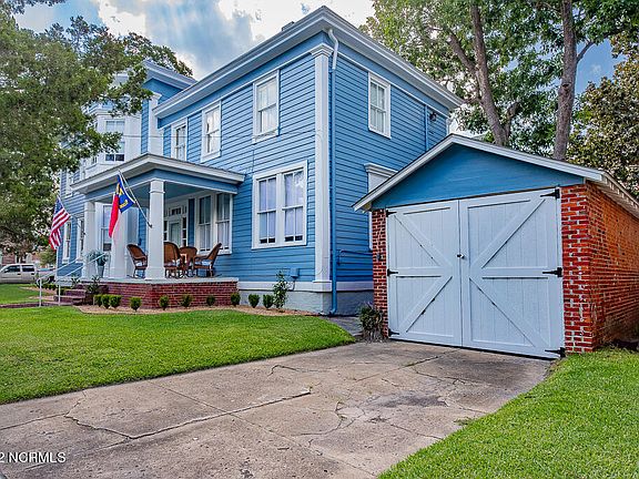 An Unbelievable opportunity has arrived to own a part of history in our beautiful historic area of New Bern. This home was constructed in 1879 by the Hancock family. From 1985-2002 it was remolded by the previous owners. In 2021 this home made another transformation of life. The floors are a combination of knotty pine and Brazilian cherry totally restored. The kitchen features quartz counter tops with a separate pantry. The dining room is breath taking. Bedroom downstairs that has been converted to a family room that transitions into the Formal Living room. Make your way upstairs where all the carpet was removed, and the hardwoods restored. The front bedroom which features raw mahogany walls have been painted to modernize this room. Step into your master with beautiful window views. Next up is your office with built in shelves. A real must see! Take a walk downtown and to the river. Beautiful Landscaping, fully painted inside and outside of home.