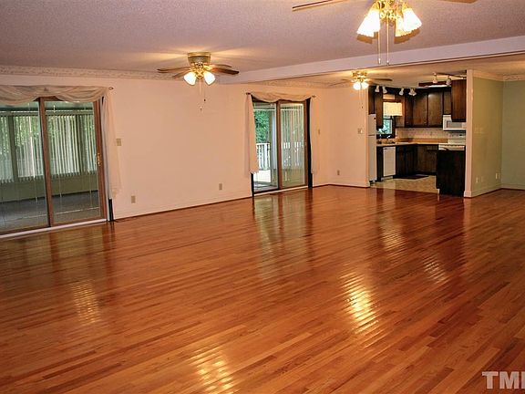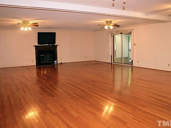 Spacious 3 bed, 2 bath ranch in North Durham.just off Roxboro Rd. Nice rocking chair front porch with 4 ceiling fans. Open floor plan with hardwood floors and fireplace. Lovely sunroom with 2 separate entrances from dining and living room. Sunroom has its own heat source. Large back deck accessible from sunroom and master bedroom. Fenced back yard. 2-car garage with tons of extra storage in basement. All appliances convey, including TV over fireplace. Lots of space. Loads of potential!