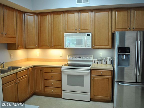 Well Appointed 1 Bedroom 2 Bath Corner Condo w/ Over-sized 1 Car Garage w/den. Gourmet Kitchen w/ LG updated Fridge, 42" Cabinets.Updated Flooring in Living Room, DR and Bedrooms. A Must See! MB Suite w/ Tray Ceiling, Walk in & Full BA. New Paint. Nice Patio facing green area & Landscaping round out the outside. Electric baseboard heat under front windows. This Unit is only mins to the MD line!