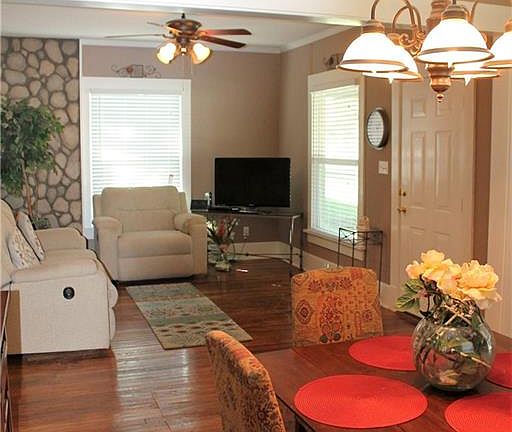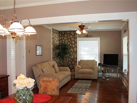 Darling house oozing with charm from the hardwood floors to the front porch to the sliding barn door in bathroom. Central heat & air, fridge, stove, and new 2 car carport.