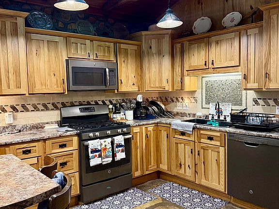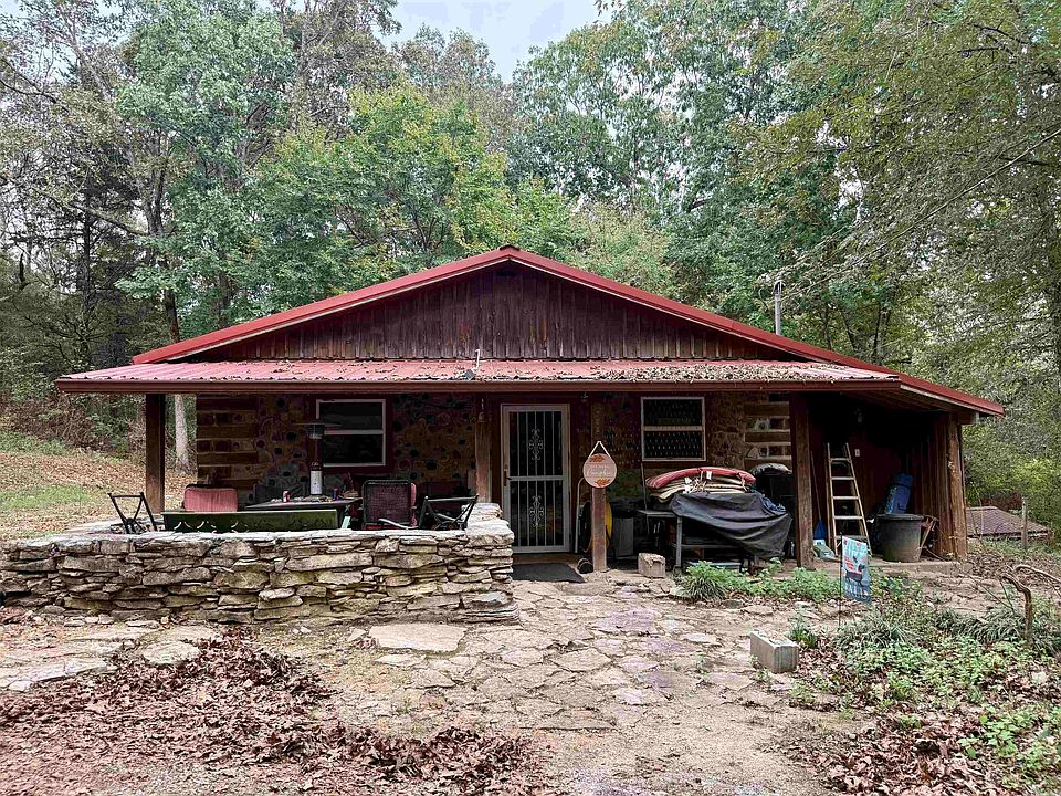 Escape to your own rustic retreat on 20 beautiful acres! This handcrafted Cedar Cordwood-style home exudes character with 16'' exterior walls and walkways made from rocks harvested right off the land. Inside, you'll find 2-3 bedrooms, 2 baths, an Amish-built kitchen, rock and laminate flooring, wood heat stove, and Senville mini-split units (2024). Outside offers space to breathe with a -acre pond, storm/root/wine cellar, 20x30 wired shop with deck, 18x20 guest house with kitchenette, storage building, and more. Roof replaced 2019/2020, propane tank leased and filled Aug 2025, and Clay Co Connect fiber internet available. Refrigerator stays, and home will be professionally cleaned after move-out. A true blend of craftsmanship, comfort, and country serenity!