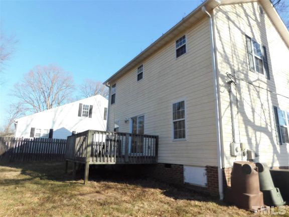Great house for the price 3 bedroom, 2.5 bath on large city lot with covered front porch, rear deck for entertaining and storage building. Vinyl siding, propane gas pack, separate dining which could be used as an office.