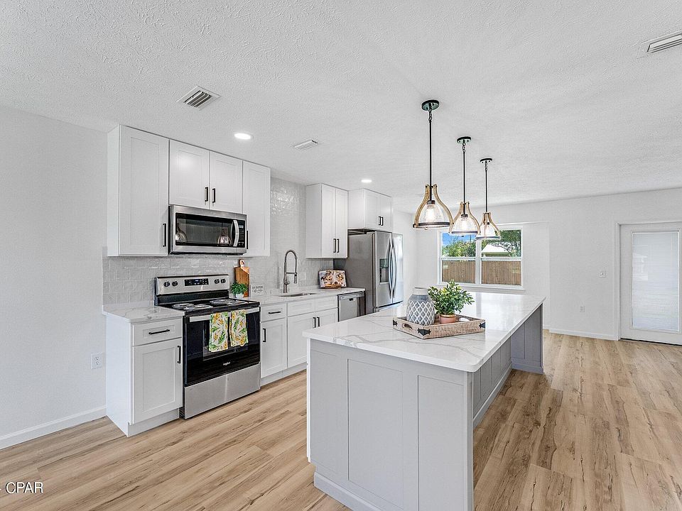 BEAUTIFULLY RENOVATED HOME in sought after location in Panama City! The stunning white kitchen has new stainless steel appliances. Open concept kitchen, dining and living room. This home as brand new flooring, bathroom tiling, vanities, mirrors, fixtures, toilets and ceiling fans. This home also features a huge bonus room that could be changed into a garage. The backyard is cleared and private. Backyard has plenty of space for a dream pool. Property is high, flat and dry perfect for pets and kids. The hallways and doors accommodate for a wheelchair. This home is minutes from everything in town! Don't miss your opportunity to own this beautiful home in the heart of Panama City.