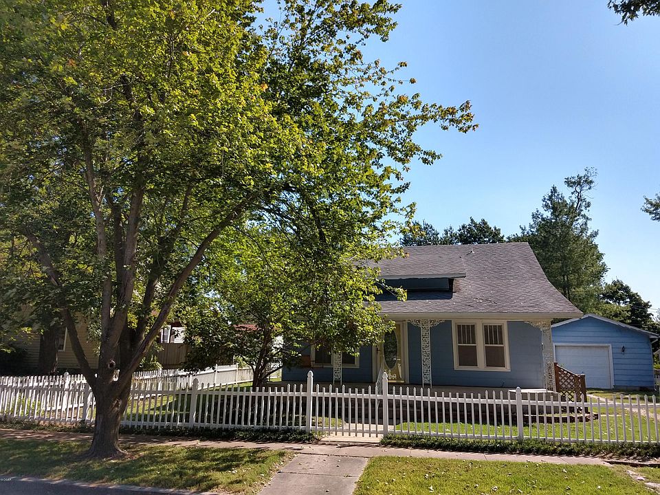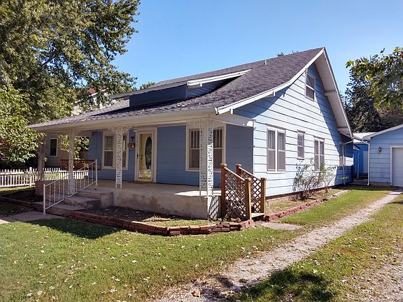 Home with spacious areas that would accommodate large gatherings, and has abundant storage. Two areas on main level afford flexibility for room usage. 28' x 36' heated detached garage/shop with alley access is equipped with 7-person Twister Safe. 28' covered front porch, 23' covered rear patio. Upper level is services by central AC - window unit added by personal preference. New Roof latter months 2019. Yard is largely fenced, and additional fencing in shop.