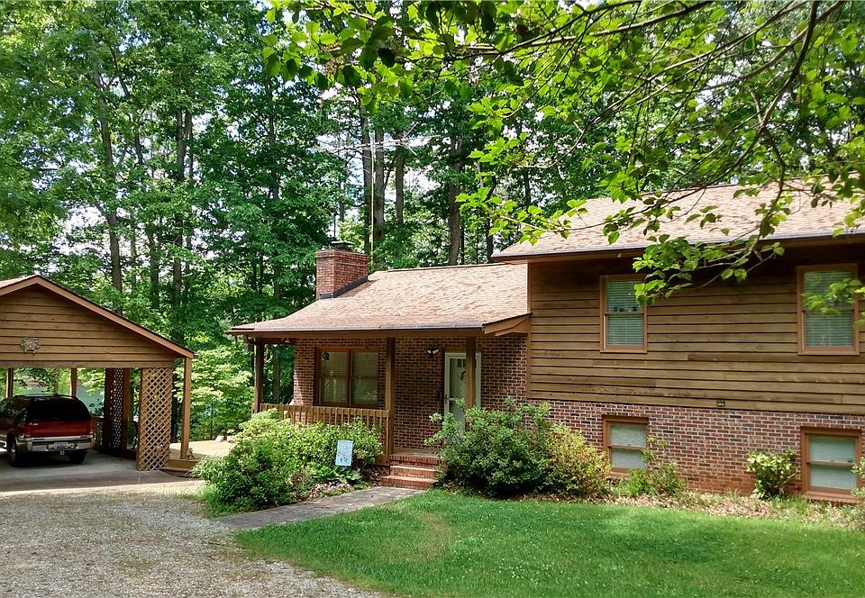 Rare opportunity to own a lake home situated on 1.45 acres just 5 min from the Clemson Campus! Two sides of the lot border corp property(477 feet!). Well built brick and cedar home features three bedrooms, 2.5 bathrooms, rock surround fireplace in the family room, kitchen with solid surface counters, spacious recreation room on the lower level, lakeside screen porch, fenced back yard, deck with nice views of Hartwell, 2 car detached carport, 2 car detached garage/workshop, high bay RV carport, circular drive and extremely gentle slope to the covered slip dock in place on great water. This property consist of two lots that were combined. Subject to county and corp approval, possible to subdivide off the 2nd lot to another buildable lake property with a 2nd covered slip dock. Endless possibilities, proximity to Clemson would make it an exceptional short term rental, two family compound or full time private residence.
