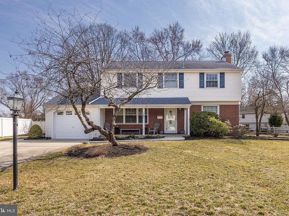 Welcome to 702 Heritage Road in the highly sought-after Birchwood section of Cinnaminson, NJ. This beautifully updated four-bedroom, 2.5-bath colonial offers the perfect combination of classic charm and modern amenities. As you enter the home, you're greeted by a covered front patio and a spacious entryway. To the right, you'll find a large living room with a cozy wood-burning fireplace and built-in shelves, ideal for relaxing or entertaining. To the left, a generously sized dining room leads into the newly remodeled kitchen, featuring sleek white cabinetry, black appliances, and a convenient half bath. The kitchen flows seamlessly into a bright and airy sunroom, complete with a gas-burning stove and access to the newly stamped concrete patio – perfect for enjoying outdoor meals or simply unwinding. Upstairs, you'll discover four well-sized bedrooms, including a tranquil primary suite. The primary suite boasts the same pristine hardwoods and soothing contemporary lighting and tones. A large, full bath with a tub completes the upper level. The home also features a finished basement, providing additional living space for all your needs. Beautifully maintained gardens surround the property, which has en extra large lot thanks to an expansive side yard, adding to the home’s curb appeal. A one-car garage and a laundry room off the garage complete the layout, ensuring comfort and convenience. Nestled in a wonderful community, this home is perfect for walking and offers easy access to major routes like Route 130, I-295, the Turnpike, and more. You’ll also enjoy an easy commute to Philadelphia and the Shore points, as well as proximity to great parks and a top-rated school system. This is a rare opportunity to own a home in one of the most desirable neighborhoods in Cinnaminson. Schedule a showing today to experience it for yourself!