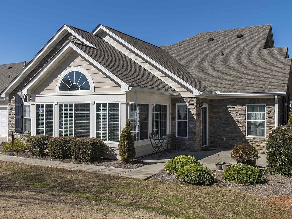 A rare opportunity to purchase in highly desirable Lexington Villas, an exclusive ranch style condo community in a great Lexington location. This spacious, one owner, 2BR end unit has a split floor plan with bedrooms on opposite sides of the home for added privacy. The popular Abbey design welcomes you with an open floor plan, tons of extra storage, vaulted ceilings, palladian windows, ample natural light and lovely finishes. Notable features include hardwood floors in the kitchen, dining area, and great room, a cozy gas fireplace, and french doors leading to an extra large Florida room with tinted windows. A gorgeous kitchen with granite counter tops, stainless steel appliances, gas range, beautiful cabinets, raised breakfast bar, TWO pantries, large drawers for pots/pans, under cabinet lighting, pull out shelving, extensive counter space and cabinet storage. The master suite has vaulted ceilings and private bath with granite double vanities, large tiled shower, tile floors and roomy walk in closet. BR 2 is over-sized with vaulted ceilings and a large walk in closet. Huge laundry room with utility sink, tile floors, granite counters, cabinets and large closet for storage. Patio with privacy fence. 2 care garage. Excellent amenities include community center, pool, library, exercise room, fire pit, grilling area, monthly social activities and clubs. Relax and enjoy this wonderful, quiet community. NO yard work! All lawn maintenance and landscaping are included in HOA along with a termite inspection.
