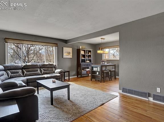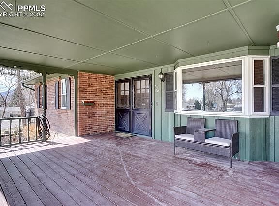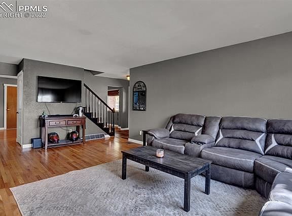 Beautiful remodeled home with plenty of character. A gorgeous views with wood floors on the main and upper levels, Kitchen has granite counter tops, backsplash and double sinks. A dining room sits off the kitchen with a large living room and family room all on the main floor with 3 AC units on the window. This cozy home has a big covered deck on the front with double doors coming into the home. A Large backyard with views of Pikes Peak, enough space to build a workshop and room to park your RV, plenty of parking space and no HOA. It is fully landscaped with a sprinkler system. Fireplace electric on main level, basement plenty of room for storage, entertainment or exercise area. The main level bedroom is being utilized as a laundry room so there is also hook ups in the basement. Located to all amenities and easy access to military bases. See this lovely home!